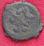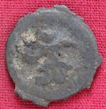 | Description / विवरण | The shape of the Coin is circular. Obverse -A Kushana type king standing with his right arm curved upwards and left arm curved downwards. Reverse -Probably, a standing figure of MAO or Moon-God with right arm curved upwards and the crescent above the left shoulder. The left arm is not visible |