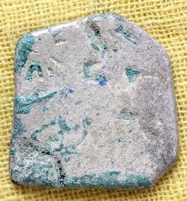 | Description / विवरण | The coin is erregular in shape. Obverse Symbol of sun, mountain auspicious mark. Reverse Due to silver sulphite formation other symbols are indistinct. |