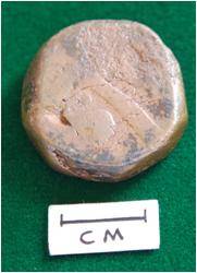 | Condition Description / स्थिति का विवरण | "1. Chipped off on both sides. 2. Depression marks on sides. 3. Black coating on surface." |