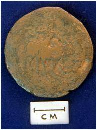 | Description / विवरण | A round shaped coin. Obverse - It has depiction of a standing male figure in military dress. The face is not clearly visible. Reverse - Siva is shown seated on a bull. |