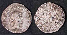 | Description / विवरण | Descrpn./Obv Helmeted bust of king to right; Greek legend, Basileos Nikephorou / Antialkidou. Descrpn./Rev Zeus enthroned left holding winged Nike; forepart of small elephant on left; Kharoshthi legend, Maharajasa jayadharasa / Amitialikidasa |