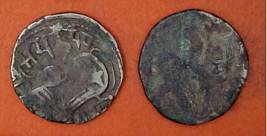 | Description / विवरण | Descrpn./Obv Recumbent bull facing left, wearing jhula (saddle cloth), with trisula (trident) symbol on rump. Above, legend in Sarada script Sri Samantadeva . Descrpn./Rev Rider with lance on caparisoned horse facing right. On left, Sarada letter bhi and on right, Sarada letter ta |