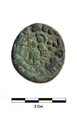| Description / विवरण | Obverse- Standing female figure, There is an indistinctive legend around the symbol . Reverse- Trisul and dots. |