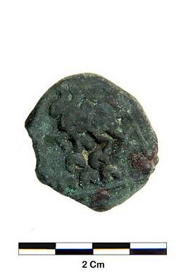 | Description / विवरण | Obverse- Standing female figure having a halo around the head, tree on the right side. Reverse- Bull figure in running posture towards the left side of a hill symbol . |