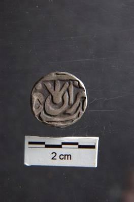 | Description / विवरण | Obverse Sa hibi- Qiran arrow head. Reverse Maimnat, trisul, Sana 17 . |