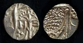 | Description / विवरण | Descrpn./Obv In the centre, a chhatra with Sa and Ta in Gurumukhi script on the left and right of its shaft; traces of the Persian legend seen on the obverse of the bigger Nanakshahi coins of Amritsar mint are also seen. Descrpn./Rev Big peepal leaf and traces of the Persian legend seen on the reverse of the bigger Nanakshahi coins of Amiritsar mint - Shri Amritsarjiv zarb [VS Year] Takht maimanat julus manus Akal Bakht. Especially traces of alif of Akal and te of Takht and maimanat are seen |