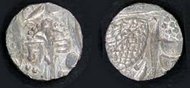 | Description / विवरण | Descrpn./Obv In the centre, a chhatra with Sa and Ta in Gurumukhi script on the left and right of its shaft; traces of the Persian legend seen on the obverse of the bigger Nanakshahi coins of Amritsar mint are also seen. Descrpn./Rev Big peepal leaf and traces of the Persian legend seen on the reverse of the bigger Nanakshahi coins of Amiritsar mint - Shri Amritsarjiv zarb [VS Year] Takht maimanat julus manus Akal Bakht. Especially traces of alif of Akal and te of Takht and maimanat are seen |