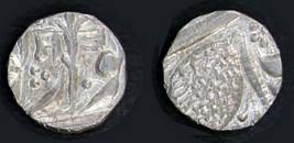 | Description / विवरण | Descrpn./Obv In the centre, a chhatra with Sa and Ta in Gurumukhi script on the left and right of its shaft; traces of the Persian legend seen on the obverse of the bigger Nanakshahi coins of Amritsar mint are also seen. Descrpn./Rev Big peepal leaf and traces of the Persian legend seen on the reverse of the bigger Nanakshahi coins of Amiritsar mint - Shri Amritsarjiv zarb [VS Year] Takht maimanat julus manus Akal Bakht. Especially traces of alif of Akal and te of Takht and maimanat are seen |