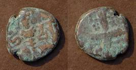 | Description / विवरण | Descrpn./Obv Stylised seated Goddess facing; Sharada legend, Ha (on l.) rsha ra (on r.). Descrpn./Rev Stylised standing king design; Sharada legend, jadeva (on r.) |