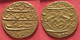 | Description / विवरण | Obverse- Az fazl zulmin/ Ghazi uddin Haider (letter jeem) Nasbat Ali 1240 Shah zad bar seen wa zar. Reverse- Coat arms fish facing each other sanah 6 in the center; top Daral- sultanate Lakhnau right julus, left manus, bottom zarb Suba Awadh. |
