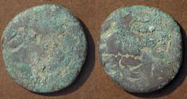 | Description / विवरण | Descrpn./Obv Stylised seated Goddess facing (Details and legend rubbed off/ worn out). Descrpn./Rev Stylised standing king design (Details and legend rubbed off/ worn out) |