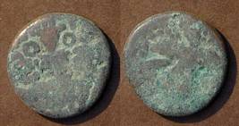 | Description / विवरण | Descrpn./Obv Stylised seated Goddess facing (Details and legend rubbed off/ worn out). Descrpn./Rev Stylised standing king design (Details and legend rubbed off/ worn out) |