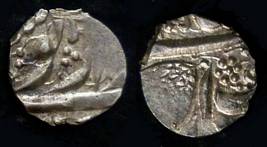 | Description / विवरण | Descrpn./Obv In the centre, a chhatra with Sa and Ta in Gurumukhi script on the left and right of its shaft; traces of the Persian legend seen on the obverse of the bigger Nanakshahi coins of Amritsar mint are also seen. Descrpn./Rev Big peepal leaf and traces of the Persian legend seen on the reverse of the bigger Nanakshahi coins of Amiritsar mint - Shri Amritsarjiv zarb [VS Year] Takht maimanat julus manus Akal Bakht. Especially traces of alif of Akal and te of Takht and maimanat are seen |