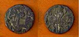 | Description / विवरण | Descrpn./Obv Recumbent bull facing left, wearing jhula (saddle cloth), with trisula (trident) symbol on rump. Above, legend in Sarada script Sri Samantadeva . Descrpn./Rev Rider with lance on caparisoned horse facing right. On left, Sarada letter bhi and on right, Sarada letter ta |