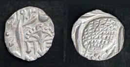 | Description / विवरण | Descrpn./Obv In the centre, a chhatra with Sa and Ta in Gurumukhi script on the left and right of its shaft; traces of the Persian legend seen on the obverse of the bigger Nanakshahi coins of Amritsar mint are also seen. Descrpn./Rev Big peepal leaf and traces of the Persian legend seen on the reverse of the bigger Nanakshahi coins of Amiritsar mint - Shri Amritsarjiv zarb [VS Year] Takht maimanat julus manus Akal Bakht. Especially traces of alif of Akal and te of Takht and maimanat are seen |