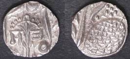| Description / विवरण | Descrpn./Obv In the centre, a chhatra with Sa and Ta in Gurumukhi script on the left and right of its shaft; traces of the Persian legend seen on the obverse of the bigger Nanakshahi coins of Amritsar mint are also seen. Descrpn./Rev Big peepal leaf and traces of the Persian legend seen on the reverse of the bigger Nanakshahi coins of Amiritsar mint - Shri Amritsarjiv zarb [VS Year] Takht maimanat julus manus Akal Bakht. Especially traces of alif of Akal and te of Takht and maimanat are seen |