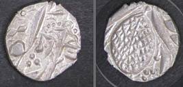 | Description / विवरण | Descrpn./Obv In the centre, a chhatra with Sa and Ta in Gurumukhi script on the left and right of its shaft; traces of the Persian legend seen on the obverse of the bigger Nanakshahi coins of Amritsar mint are also seen. Descrpn./Rev Big peepal leaf and traces of the Persian legend seen on the reverse of the bigger Nanakshahi coins of Amiritsar mint - Shri Amritsarjiv zarb [VS Year] Takht maimanat julus manus Akal Bakht. Especially traces of alif of Akal and te of Takht and maimanat are seen |