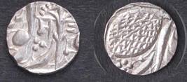 | Description / विवरण | Descrpn./Obv In the centre, a chhatra with Sa and Ta in Gurumukhi script on the left and right of its shaft; traces of the Persian legend seen on the obverse of the bigger Nanakshahi coins of Amritsar mint are also seen. Descrpn./Rev Big peepal leaf and traces of the Persian legend seen on the reverse of the bigger Nanakshahi coins of Amiritsar mint - Shri Amritsarjiv zarb [VS Year] Takht maimanat julus manus Akal Bakht. Especially traces of alif of Akal and te of Takht and maimanat are seen |