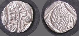 | Description / विवरण | Descrpn./Obv In the centre, a chhatra with Sa and Ta in Gurumukhi script on the left and right of its shaft; traces of the Persian legend seen on the obverse of the bigger Nanakshahi coins of Amritsar mint are also seen. Descrpn./Rev Big peepal leaf and traces of the Persian legend seen on the reverse of the bigger Nanakshahi coins of Amiritsar mint - Shri Amritsarjiv zarb [VS Year] Takht maimanat julus manus Akal Bakht. Especially traces of alif of Akal and te of Takht and maimanat are seen |