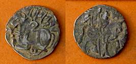 | Description / विवरण | Descrpn./Obv Recumbent bull facing left, wearing jhula (saddle cloth), with trisula (trident) symbol on rump. Above, legend in Sarada script Sri Samantadeva . Descrpn./Rev Rider with lance on caparisoned horse facing right. On left, Sarada letter bhi and on right, Sarada letter ta |