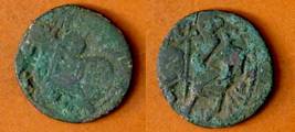 | Description / विवरण | Descrpn./Obv Recumbent bull facing left, wearing jhula (saddle cloth), with trisula (trident) symbol on rump. Above, legend in Sarada script Sri Samantadeva . Descrpn./Rev Rider with lance on caparisoned horse facing right. On left, Sarada letter bhi and on right, Sarada letter ta |