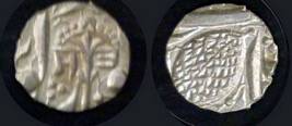 | Description / विवरण | Descrpn./Obv In the centre, a chhatra with Sa and Ta in Gurumukhi script on the left and right of its shaft; traces of the Persian legend seen on the obverse of the bigger Nanakshahi coins of Amritsar mint are also seen. Descrpn./Rev Big peepal leaf and traces of the Persian legend seen on the reverse of the bigger Nanakshahi coins of Amiritsar mint - Shri Amritsarjiv zarb [VS Year] Takht maimanat julus manus Akal Bakht. Especially traces of alif of Akal and te of Takht and maimanat are seen |