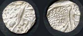 | Description / विवरण | Descrpn./Obv In the centre, a chhatra with Sa and Ta in Gurumukhi script on the left and right of its shaft; traces of the Persian legend seen on the obverse of the bigger Nanakshahi coins of Amritsar mint are also seen. Descrpn./Rev Big peepal leaf and traces of the Persian legend seen on the reverse of the bigger Nanakshahi coins of Amiritsar mint - Shri Amritsarjiv zarb [VS Year] Takht maimanat julus manus Akal Bakht. Especially traces of alif of Akal and te of Takht and maimanat are seen |