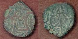 | Description / विवरण | Descrpn./Obv Recumbent bull facing left, wearing jhula (saddle cloth). Above, legend in Sarada script Sri Samantadeva (in cursive letters, mostly truncated and seen partially or off the flan). Descrpn./Rev Rider with lance on caparisoned horse facing right. |