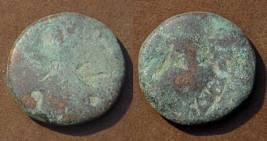 | Description / विवरण | Descrpn./Obv Stylised seated Goddess facing (Details and legend rubbed off/ worn out). Descrpn./Rev Stylised standing king design (Details and legend rubbed off/ worn out) |