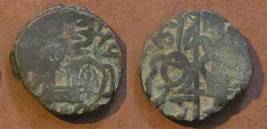 | Description / विवरण | Descrpn./Obv Recumbent bull facing left, wearing jhula (saddle cloth). Above, legend in Sarada script Sri Samantadeva (in cursive letters, mostly truncated and seen partially or off the flan). Descrpn./Rev Rider with lance on caparisoned horse facing right. |