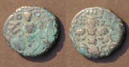 | Description / विवरण | Descrpn./Obv Stylised seated Goddess facing; Sharada legend, Ha (on l.) rsha ra (on r.). Descrpn./Rev Stylised standing king design; Sharada legend, jadeva (on r.) |