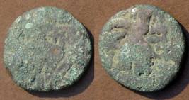| Description / विवरण | Descrpn./Obv Stylised seated Goddess facing; Sharada legend, Sri (on l.) Sugandha (on r.). Descrpn./Rev Stylised standing king design; Sharada legend, devya (on r.) |