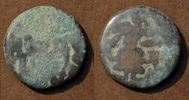 | Description / विवरण | Descrpn./Obv Stylised seated Goddess facing; Sharada legend, Sri (on l.) Sugandha (on r.). Descrpn./Rev Stylised standing king design; Sharada legend, devya (on r.) |