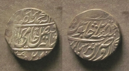 | Description / विवरण | Obverse - Ilah Muhammad shah Alam badshah/ saya fazl hamidin/ sikkah/ zad dar baft kishwar but Trisul symbol above the word hami flag out the left corner Reverse - Manus maimanat sanah 28 julus zarb Ravishnagar Sagar |