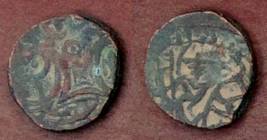 | Description / विवरण | Descrpn./Obv Recumbent bull facing left, wearing jhula (saddle cloth). Above, legend in Sarada script Sri Samantadeva (in cursive letters, mostly truncated and seen partially or off the flan). Descrpn./Rev Rider with lance on caparisoned horse facing right. |