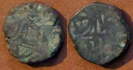 | Description / विवरण | Descrpn./Obv Recumbent bull facing left, wearing jhula (saddle cloth). Above, legend in Sarada script Sri Samantadeva (in cursive letters, mostly truncated and seen partially or off the flan). Descrpn./Rev Rider with lance on caparisoned horse facing right. |