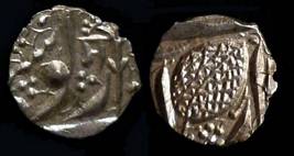 | Description / विवरण | Descrpn./Obv In the centre, a chhatra with Sa and Ta in Gurumukhi script on the left and right of its shaft; traces of the Persian legend seen on the obverse of the bigger Nanakshahi coins of Amritsar mint are also seen. Descrpn./Rev Big peepal leaf and traces of the Persian legend seen on the reverse of the bigger Nanakshahi coins of Amiritsar mint - Shri Amritsarjiv zarb [VS Year] Takht maimanat julus manus Akal Bakht. Especially traces of alif of Akal and te of Takht and maimanat are seen |