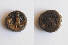 | Description / विवरण | On the obverse Bull standing in front of Shiva. On the reverse two orbed Ujjayani symbol is depicted. |