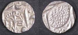 | Description / विवरण | Descrpn./Obv In the centre, a chhatra with Sa and Ta in Gurumukhi script on the left and right of its shaft; traces of the Persian legend seen on the obverse of the bigger Nanakshahi coins of Amritsar mint are also seen. Descrpn./Rev Big peepal leaf and traces of the Persian legend seen on the reverse of the bigger Nanakshahi coins of Amiritsar mint - Shri Amritsarjiv zarb [VS Year] Takht maimanat julus manus Akal Bakht. Especially traces of alif of Akal and te of Takht and maimanat are seen |
