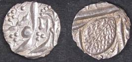 | Description / विवरण | Descrpn./Obv In the centre, a chhatra with Sa and Ta in Gurumukhi script on the left and right of its shaft; traces of the Persian legend seen on the obverse of the bigger Nanakshahi coins of Amritsar mint are also seen. Descrpn./Rev Big peepal leaf and traces of the Persian legend seen on the reverse of the bigger Nanakshahi coins of Amiritsar mint - Shri Amritsarjiv zarb [VS Year] Takht maimanat julus manus Akal Bakht. Especially traces of alif of Akal and te of Takht and maimanat are seen |