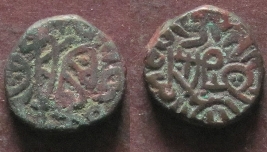 | Description / विवरण | Obverse - Bull to left; around suritan sri alavadin in Devnagari. Reverse - Horsemen to right; above sri hamira. |