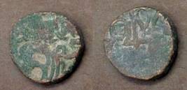 | Description / विवरण | Descrpn./Obv Recumbent bull facing left, wearing jhula (saddle cloth). Above, legend in Sarada script Sri Samantadeva (in cursive letters, mostly truncated and seen partially or off the flan). Descrpn./Rev Rider with lance on caparisoned horse facing right. |
