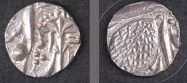 | Description / विवरण | Descrpn./Obv In the centre, a chhatra with Sa and Ta in Gurumukhi script on the left and right of its shaft; traces of the Persian legend seen on the obverse of the bigger Nanakshahi coins of Amritsar mint are also seen. Descrpn./Rev Big peepal leaf and traces of the Persian legend seen on the reverse of the bigger Nanakshahi coins of Amiritsar mint - Shri Amritsarjiv zarb [VS Year] Takht maimanat julus manus Akal Bakht. Especially traces of alif of Akal and te of Takht and maimanat are seen |