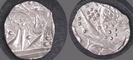 | Description / विवरण | Descrpn./Obv In the centre, a chhatra with Sa and Ta in Gurumukhi script on the left and right of its shaft; traces of the Persian legend seen on the obverse of the bigger Nanakshahi coins of Amritsar mint are also seen. Descrpn./Rev Big peepal leaf and traces of the Persian legend seen on the reverse of the bigger Nanakshahi coins of Amiritsar mint - Shri Amritsarjiv zarb [VS Year] Takht maimanat julus manus Akal Bakht. Especially traces of alif of Akal and te of Takht and maimanat are seen |