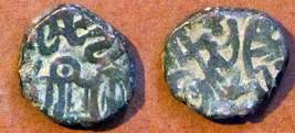 | Description / विवरण | Descrpn./Obv Recumbent bull facing left, wearing jhula (saddle cloth). Above, legend in Sarada script Sri Samantadeva (in cursive letters, mostly truncated and seen partially or off the flan). Descrpn./Rev Rider with lance on caparisoned horse facing right. |