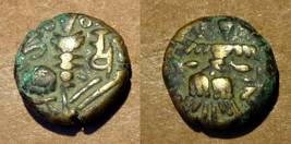 | Description / विवरण | Descrpn./Obv Stylised seated Goddess facing; Sharada legend, Ha (on l.) rsha ra (on r.). Descrpn./Rev Stylised standing king design; Sharada legend, jadeva (on r.) |