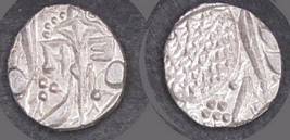 | Description / विवरण | Descrpn./Obv In the centre, a chhatra with Sa and Ta in Gurumukhi script on the left and right of its shaft; traces of the Persian legend seen on the obverse of the bigger Nanakshahi coins of Amritsar mint are also seen. Descrpn./Rev Big peepal leaf and traces of the Persian legend seen on the reverse of the bigger Nanakshahi coins of Amiritsar mint - Shri Amritsarjiv zarb [VS Year] Takht maimanat julus manus Akal Bakht. Especially traces of alif of Akal and te of Takht and maimanat are seen |
