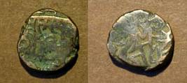| Description / विवरण | Descrpn./Obv Recumbent bull facing left, wearing jhula (saddle cloth). Above, legend in Sarada script Sri Samantadeva (in cursive letters, mostly truncated and seen partially or off the flan). Descrpn./Rev Rider with lance on caparisoned horse facing right. |