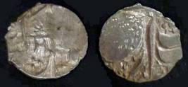 | Description / विवरण | Descrpn./Obv In the centre, a chhatra with Sa and Ta in Gurumukhi script on the left and right of its shaft; traces of the Persian legend seen on the obverse of the bigger Nanakshahi coins of Amritsar mint are also seen. Descrpn./Rev Big peepal leaf and traces of the Persian legend seen on the reverse of the bigger Nanakshahi coins of Amiritsar mint - Shri Amritsarjiv zarb [VS Year] Takht maimanat julus manus Akal Bakht. Especially traces of alif of Akal and te of Takht and maimanat are seen |
