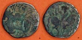 | Description / विवरण | Descrpn./Obv Recumbent bull facing left, wearing jhula (saddle cloth), with trisula (trident) symbol on rump. Above, legend in Sarada script Sri Samantadeva . Descrpn./Rev Rider with lance on caparisoned horse facing right. On left, Sarada letter bhi and on right, Sarada letter ta |